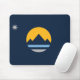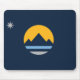 Mousepad com a nova bandeira da cidade de Reno, Nevada; uma bandeira azul escura com um sol amarelo e montanhas azuis no centro