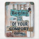 A vida começa no final do mouse Pad da Zona de conforto do Emporium de Jenn. Eu adoro criar arte mestiça. É uma forma de relaxamento para mim. As peças geralmente são uma combinação de uma citação inspiradora ou pensamento combinado a muita experimentação com diferentes meios. Arte do Emporium de Jenn.