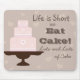 Slogan "A vida é curta, coma bolo, muito e muito bolo com um bolo de fosco rosa de 3 camadas sobre fundo cardíaco. Mousepad.