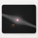 A visão da vizinhança de um hipotético planeta terrestre e lua orbitando uma estrela anã vermelha destacada pelo artista.