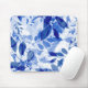 Mousepad Abstrato Azul e Folhas Brancas