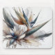 Uma composição delicada apresenta um pássaro abstrato de flor do paraíso em tons azuis, verdes e laranja mudados