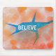 Abstrato aqua crack sobre o padrão laranja do livro com a palavra "acreditar".