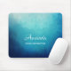 Pasta personalizada de mouse com um padrão bonito de meia mandala azul com uma cor gradiente de fundo de azul-marinho claro que transforma em azul-marinho escuro. Tranquilo e sereno.