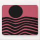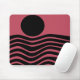 Este mouse pad tem design Bauhaus de linhas onduladas e círculos em preto num campo de cor-de-rosa profundo.