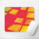 O mousepad moderno com fundo avermelhado e aquece quadrados amarelos.