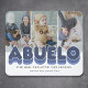 Um belo painel de fotos do avô, com 3 fotos da família para você substituí-lo pelo seu, o título "abuelo", um ditado personalizado que lê "o homem, o mito, a lenda", e os nomes dos netos.