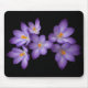 Este mousepad bonito é decorado com um buquê de seis flores roxas pálidas delicadas do açafrão com os centros dourados ajustados em um fundo preto puro. Quando os açafrões florescem, nós sabemos que o primavera está aqui!