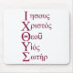 IXOYE é um acrostic grego (ser grego a língua principal do mundo no tempo do século I dos cristãos) e suportes para o "Jesus Cristo, o filho do deus, o salvador." Estas letras gregas compo a palavra para o "peixe" que é o símbolo o mais antigo da cristandade e foi usado durante todo as idades para representar cristãos. Personalize isto - nenhuma carga - usando a personalização ele! abotoe (acima.