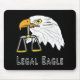 A design de Águia Legal mostra uma águia de olhos afiados segurando uma balança. Um trocadilho e uma peça sobre a expressão "Águia Jurídica" criando um gráfico divertido para advogados e para qualquer pessoa envolvida com a lei e profissões jurídicas.
