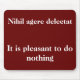 Um mousemate vermelho escuro com uma citação latina e tradução em inglês em texto branco. "É agradável não fazer nada", do advogado romano Cícero. Basicamente significa que é bom poder sentar-se e relaxar e não sentir-se estressado.