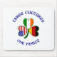 Belo design para o Dia de São Patrício ou qualquer ocasião, apresenta uma bandeira de trevo com folhas em forma de coração. Cada folha tem uma bandeira: EUA, Irlanda ou Alemanha. Lê-se "três culturas, uma família", permitindo que você honre, com orgulho e amor, todas as suas ancestrais, heranças e culturas alemãs, americanas e irlandesas. Divertido em eventos familiares também.