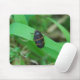 Dois alinharam o inseto do spittle (bicincta de Prosapia) na grama. Um inseto preto pequeno com olhos e pés vermelhos, duas listras alaranjadas nele está para trás.