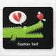Alligator expressando seu amor por pássaro com lágrimas de crocodilo. Texto personalizado.
