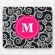 Mostre fora seu estilo pessoal em uma maneira do divertimento com este mousepad do monograma do redemoinho do rosa quente e do preto.