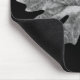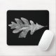 Este é um tapete do rato preto com uma folha do preto e do whit nele