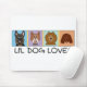 Quatro cães todos raças e texto diferentes que lê de "o amante do cão Li'l" em t-shirt, em canecas, em sacolas, em etiquetas, e em mais do amante do cão.