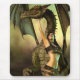 Uma menina scantily folheada fricciona o queixo de seu dragão favorito.