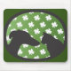Silhueta de cães e gatos contra fundo de folha de trevo verde e branco.