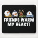 Três homens de neve e uma rena adoram esses bonitos autocolantes de férias, ímãs, cartões de saudação, T-shirts e outros itens e o texto lê "Amigos Querem Meu Coração!". Estas T-shirts de férias e outros artigos são perfeitos para todo o inverno, não só para o Natal!
