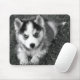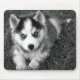 Ah...quem pode resistir ao doce rosto de um cachorro Husky siberiano? Dê ao seu espaço de trabalho um pouco de pizzazz com um mouse canino. Este bocal divertido apresenta um retrato preto e branco de um filhote Siberiano, descansado na grama alta.