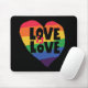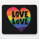 Esta trabalho de arte apresenta a frase "O amor é o amor" projetada dentro de um coração colorido arco-íris.
