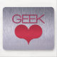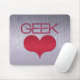 Mousepad Simples, mas legal, com a palavra geek e coração úmido. Avise seus amigos do escritório sobre sua afeição por geeks com este divertido mouse pad! Personalize este design, removendo ou substituindo a imagem de fundo de metal elegante.