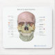 Usando desenhos do crânio humano com código de cores para destacar os ossos individuais.