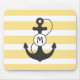 Listras náuticas do amarelo de manteiga com a âncora e o monograma das cinzas de carvão vegetal.