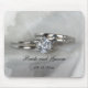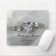 Personalize os elegantes Anéis de Casamento em Mousepad Cinza com os nomes pessoais da noiva e do noivo e a data específica da cerimônia de casamento. Este tapete nupcial personalizado clássico do rato apresenta uma fotografia digitalmente melhorada de um anel de noivado de diamante e conjunto de bandas de casamento com um fundo de cinza macia.