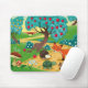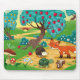 Animais na madeira. Ilustração engraçada dos desenhos animados para o mousepad.