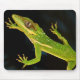 Um Anole verde que anda em uma janela de vidro. Fotografia pela flor de Minerva.