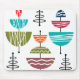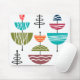 Este mouse pad tem uma design moderna do século médio de meio círculo com linhas brancas e uma linha através delas fazer que elas se pareçam com antena.