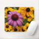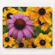 Um Coneflower roxo está fora de um remendo de Susans de olhos pretos.