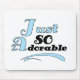 Apenas t-shirt tão adoráveis, bodysuits, babadores, coberturas, panos do burp, ímãs, etiquetas, bolsas, e outros artigos com um design de texto azul e preto.