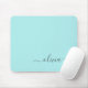 Mousepad Aqua Blue Teal Girly Script Monograma Nome Moderno