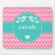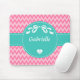 Personalize adicionando seu nome a este mousepad padrão do chevron, cor-de-rosa, com duas tonalidades, cor-de-rosa, com uma faixa verde de hortelã-costura, decorada com um arco branco-na moda e um coração com um dentro de âncora de marinheiros. Design perfeito para a adolescente.