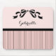 Um pinto parisiense pálido pálido e um pínus preto padrão mousepad com uma fita escura giro presa em um estêncil de arco bonito. Personalize esta rosa claro feminina francesa inspirou design de listras finas ao adicionar seu nome.
