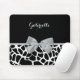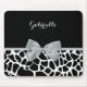 Um impressão de girafa branca e preta com uma fita elegante de cinza prateada atada a um arco feminino. Personalize este design de impressão de animais femininos adicionando seu nome. Imagem impressa plana, não arco real.