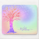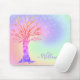 Pad personalizado do mouse Rainbow. Essa bonito cobertura de mouse é decorada com uma árvore e fundo em cores arco-íris com estrelas cintilantes. Você pode personalizá-lo com um nome ou monograma. Árvore Mosaica Original © Michele Davies.