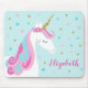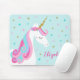 Este mouse pad apresenta um belo design de unicórnio branco com estrelas e falso brilho dourado em um fundo de aqua pastel. Personalize-o com um nome.