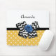 Adicione uma vibração giratória ao estilo do seu escritório com este giro mousepad padrão de bolinhas amarelo e branco com um arco chevron preto e branco, e um rosa de fita azul-chic. Faça com que este retrato amarelo e azul encontre a design moderna personalizada adicionando o nome da sua adolescente. Imagem impressa plana, NÃO fita e arco de rosetas reais.