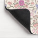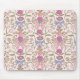 Mousepad boho e rústico com ilustração desenhada à mão de arcos e flores em cores rosa e roxo.
