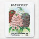 Ilustração antiga de rótulo de produto de pacote de sementes com plantas e flores de Candytuff. Cultive lindas flores mistas vermelhas, roxas, rosadas e brancas no seu jardim de primavera ou em uma fazenda. Propaganda antiga para a Wayne Bash Seed Company, Fort Wayne, Indiana.