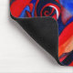 com design de arte original a partir de pintura aquosa por Sacha Grossel, de rosa vermelha grande, de grande foco, estilo macro, com realces azuis. Essa tradicional flor inglesa com pétalas crimson tem um design de cor intenso e brilhante que transmite a abstração da forma botânica e temas de amor e paixão.