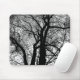 Um mouse pad com uma foto de alto contraste de uma árvore no inverno. A cor de fundo deste mouse também pode ser personalizada para que possa ser preta com praticamente qualquer cor diferente de preto.