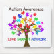 Linda e única árvore de autismo com quebra-cabeça de autismo, borboletas, corações e "Advogado de Apoio ao Amor" para apoiar a Consciência do Autismo.