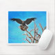 Imagem fotoomanipulada de um Raven pousando no topo de um zimbro alto no alto deserto da Arizona.