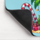 Mousepad com uma imagem de feriado sazonal. Uma palmeira tropical decorada em luzes festivas com uma estrela no topo. Uma bengala branca e vermelha gigante que sai da areia. Presentes de Natal debaixo da árvore. Whimsical e divertido.