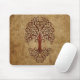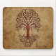 Padrões tribais intrincados simétricos deste redemoinho das características de design da árvore. As texturas ásperas e as cores marrons dão ao teste padrão o olhar de uma cinzeladura antiga. Funcionamento das rachaduras durante todo o fundo que dá a este tapete do rato um olhar fraturado. As folhas, os ramos e as raizes são representados com as linhas de fluxo bonitas que criam um símbolo corajoso e à moda da natureza.